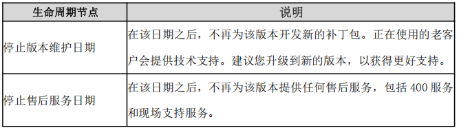 聯(lián)軟科技每年在 6、12 月份發(fā)布長期支持的軟件版本,現(xiàn)對公司產(chǎn)品生命周期管理各時間節(jié)點明確,如下表格所示: