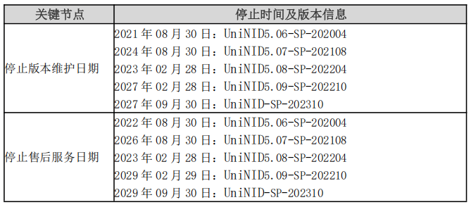 聯(lián)軟科技每年在10 月份發(fā)布長期支持的軟件版本,現(xiàn)對公司產(chǎn)品生命周期管理各時間節(jié)點明確,如下表格所示: