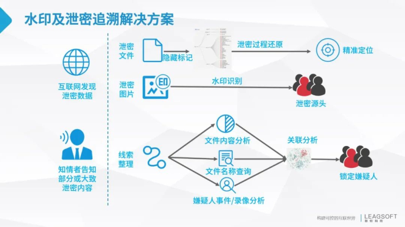 “威懾為主”主要是指:對員工主動泄密,以威懾為主。通過多項安全能力(包括文件追蹤、文件DNA、水印等),強化心理震懾的作用。企業(yè)可以借助多種專利水印技術(shù),實現(xiàn)數(shù)據(jù)泄密回溯。同時支持在截屏、拍照、打印時附加明文、隱形等多重形式的水印,通過技術(shù)和管理結(jié)合,一旦泄密可追溯泄密源頭,有效遏制“內(nèi)鬼式”數(shù)據(jù)泄密事件。