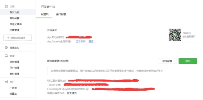 2. 配置公眾平臺(tái)功能