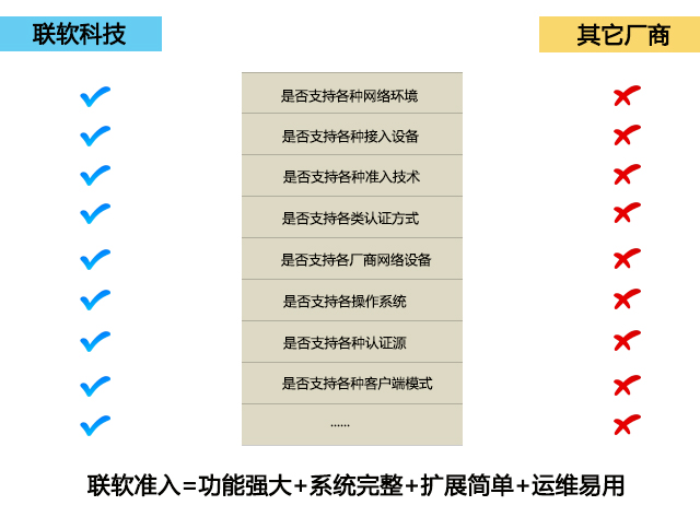 選擇聯(lián)軟準入控制,不單是做設(shè)備入網(wǎng)的接入管控,更是搭建一個全方位安全防護體系的基礎(chǔ),在技術(shù)高速發(fā)展和業(yè)務(wù)靈活多變的今天,讓選擇更有選擇!