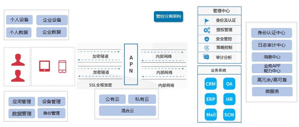 政策驅(qū)動:國家“十四五”規(guī)劃提出要推進政務(wù)信息化發(fā)展;各級政務(wù)外網(wǎng)管理單位也發(fā)布相關(guān)標(biāo)準(zhǔn)要求,包含《信息安全技術(shù)電子政務(wù)移動辦公系統(tǒng)安全技術(shù)規(guī)范》以及《政務(wù)外網(wǎng)終端一機兩用安全管控技術(shù)指南》,明確了接入政務(wù)外網(wǎng)終端、移動設(shè)備的安全防護技術(shù)要求。 業(yè)務(wù)場景:移動設(shè)備安全接入到政務(wù)外網(wǎng),囊括政務(wù)外網(wǎng)的四個安全維度,移動接入安全、移動設(shè)備安全、移動應(yīng)用安全、移動數(shù)據(jù)安全,通過對四個維度的管控來規(guī)范移動設(shè)備通過互聯(lián)網(wǎng)接入政務(wù)外網(wǎng)訪問業(yè)務(wù)。 一機兩用:移動安全接入也是一機兩用的場景之一,接入政務(wù)外網(wǎng)的移動設(shè)備與接入政務(wù)外網(wǎng)的辦公終端要形成聯(lián)防聯(lián)動,形成政務(wù)業(yè)務(wù)應(yīng)用運營平臺,規(guī)范在政務(wù)外網(wǎng)發(fā)布上線的應(yīng)用建設(shè)。 隱私保護:針對政務(wù)人員手機辦公場景,提供個人信息安全保護,防止越權(quán)導(dǎo)致的個人信息泄露。