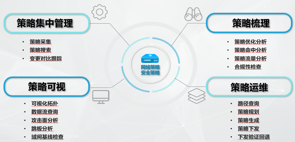 國家及行業(yè)監(jiān)管部門監(jiān)管力度不斷加強(qiáng),《網(wǎng)絡(luò)安全等級(jí)保護(hù)測(cè)評(píng)要求2.0》中提到,在“安全區(qū)域邊界-訪問控制”項(xiàng)中,要求對(duì)防火墻、路由器、交換機(jī)等邊界網(wǎng)絡(luò)設(shè)備的訪問控制策略進(jìn)行檢查。保證訪問控制策略精細(xì)化、邏輯關(guān)系合理,不允許存在寬泛、權(quán)限過大等策略。 隨著信息化的加速,應(yīng)用場(chǎng)景不斷增加,防火墻以及路由交換設(shè)備數(shù)量和種類日益增多,安全策略控制的力度日趨細(xì)化嚴(yán)格,導(dǎo)致運(yùn)維效率低、出錯(cuò)幾率大。許多用戶目前對(duì)安全策略的管理缺乏有效的手段,無法檢查全策略配置的正確性。在安全策略配置變更、新增時(shí),管理員操作依據(jù)較為模糊,缺少相關(guān)的數(shù)據(jù)分析,容易造成安全策略配置上的缺陷或者錯(cuò)誤,給運(yùn)維工作帶來許多困難。